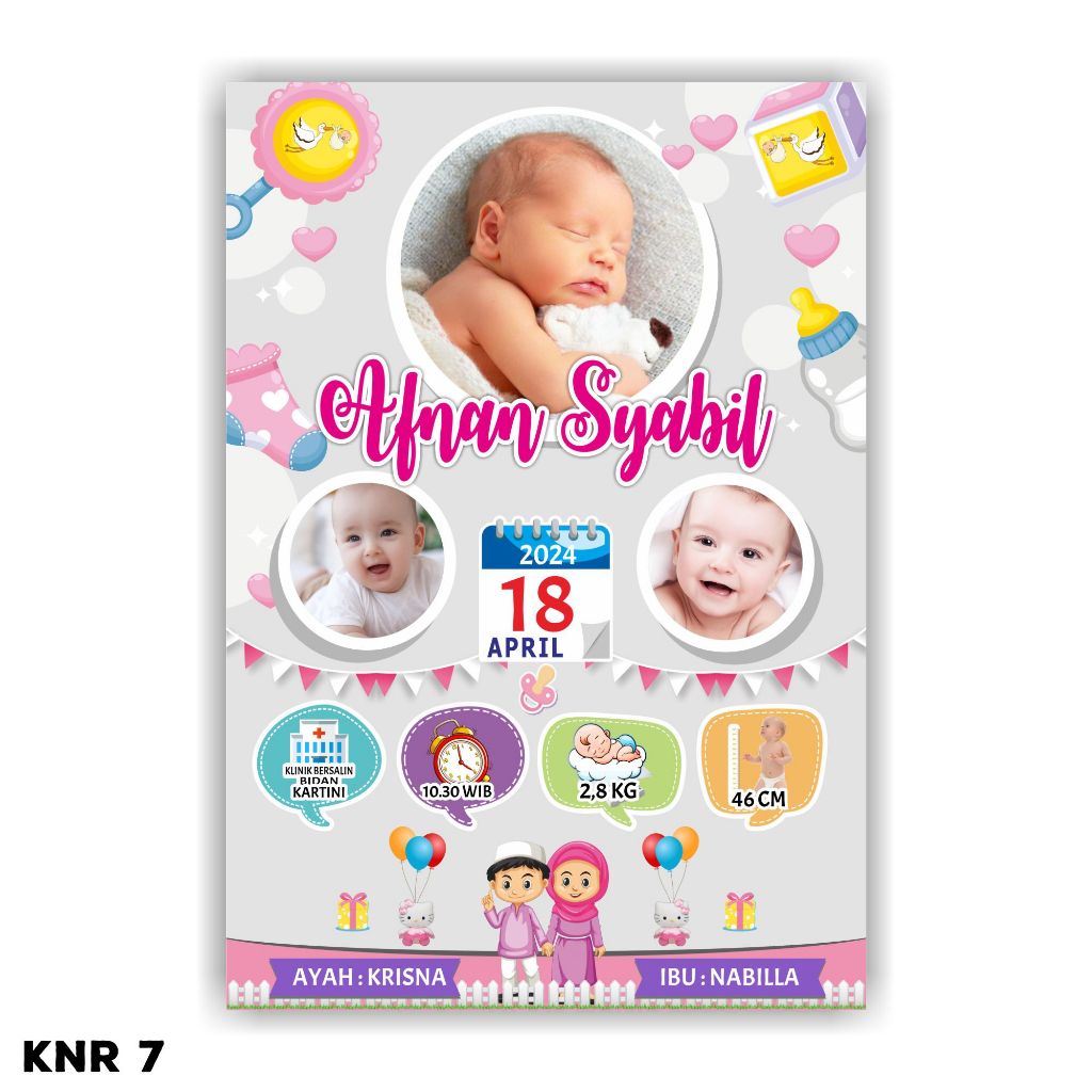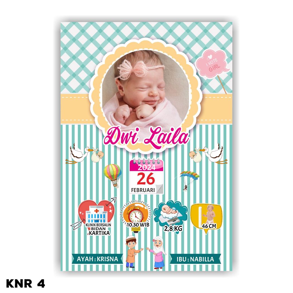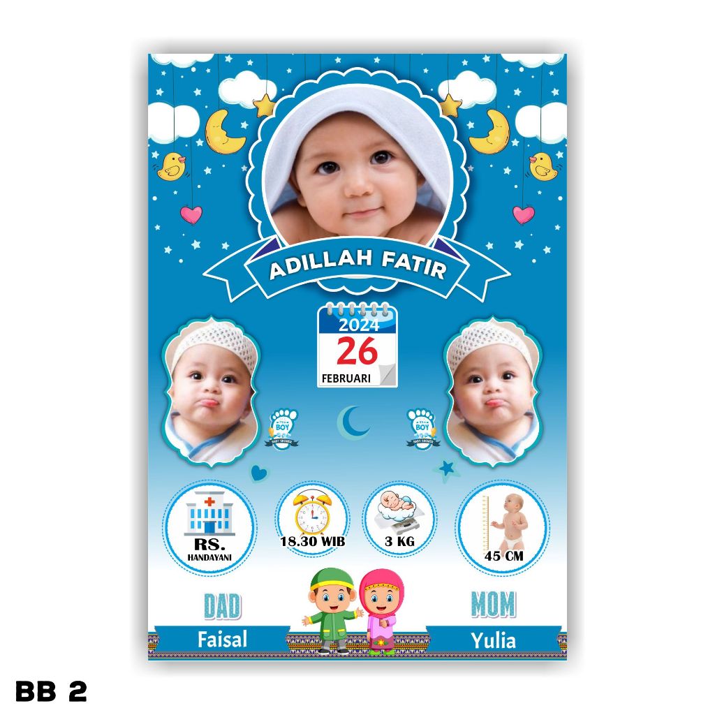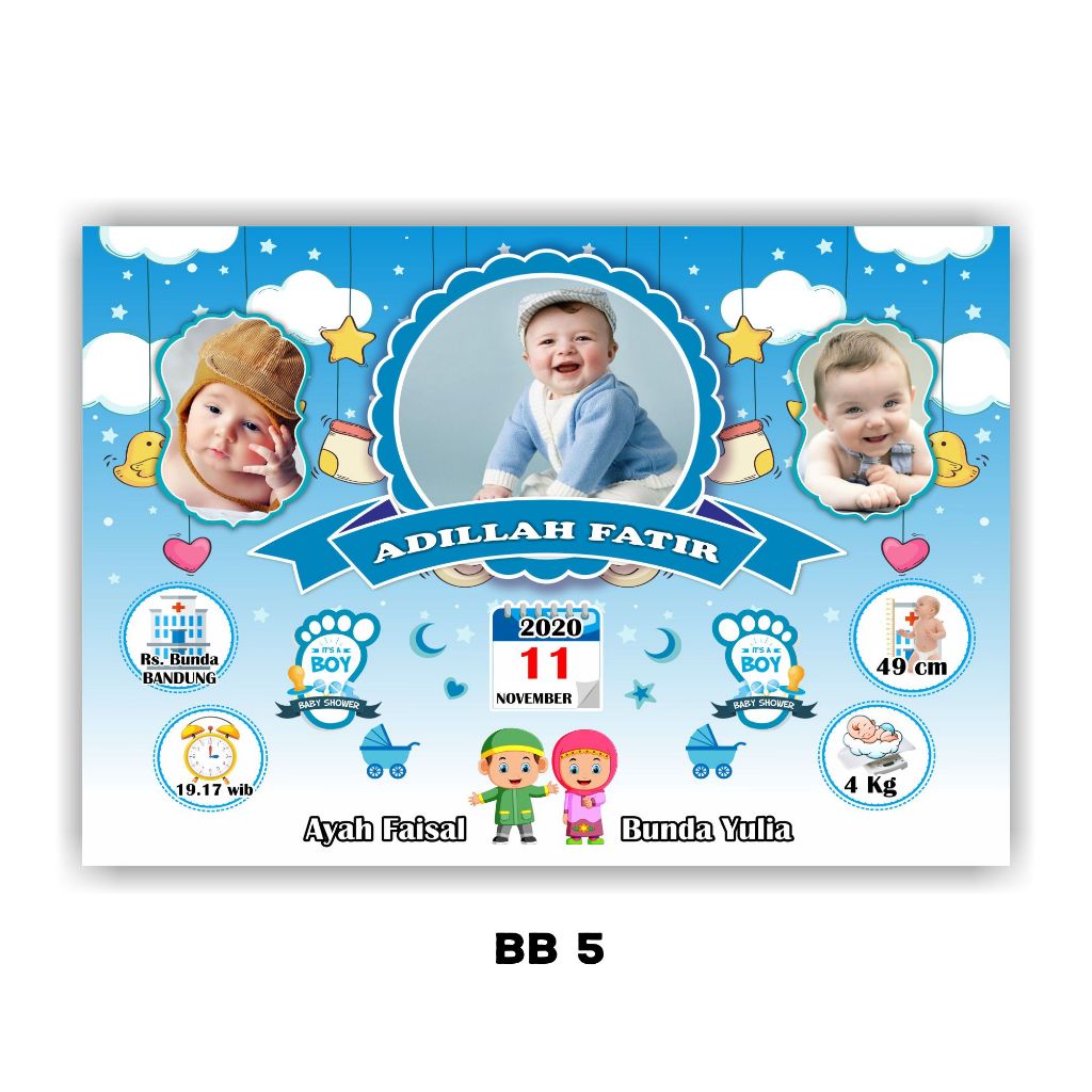 Desain Biodata Bayi + Cetak Bingkai 11R Bio Baby - Biodata Kelahiran Bayi - Baby Bio | Fiksipic