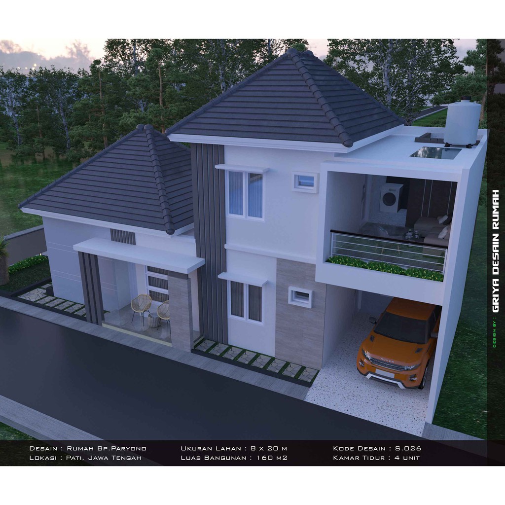 Desain Denah Rumah 1,5 Lantai Ukuran 8x20 Meter Type 160 Hook Minimalis