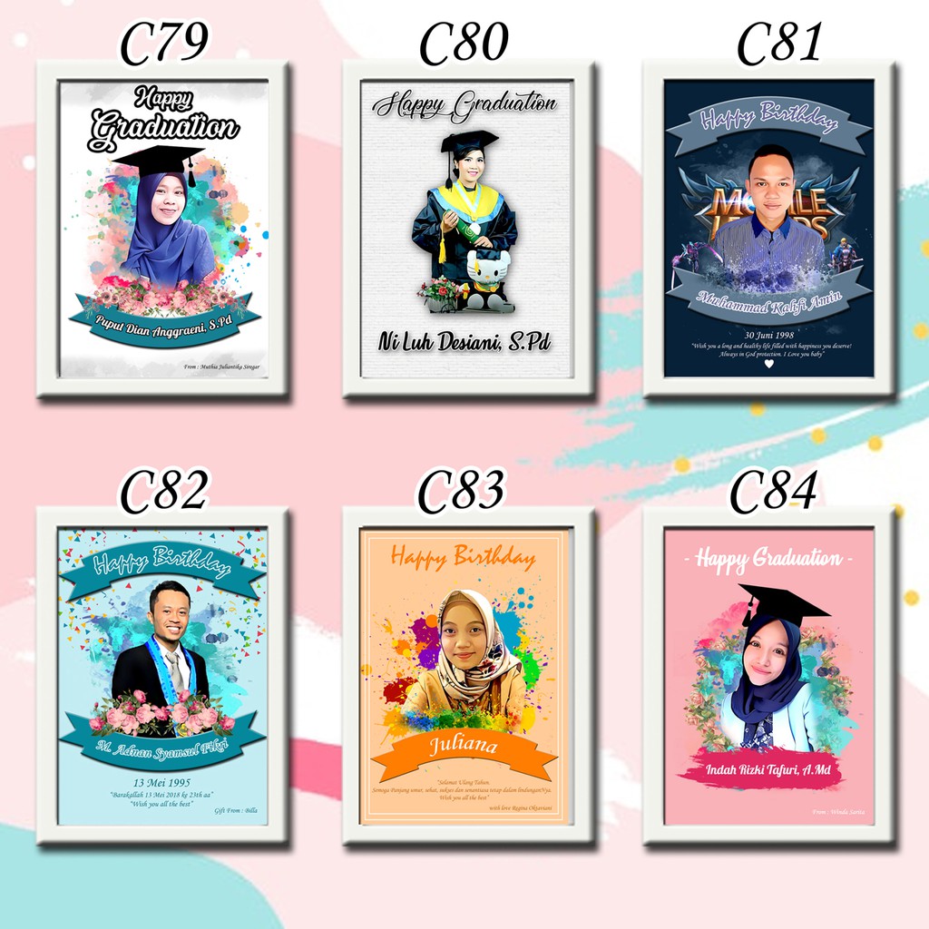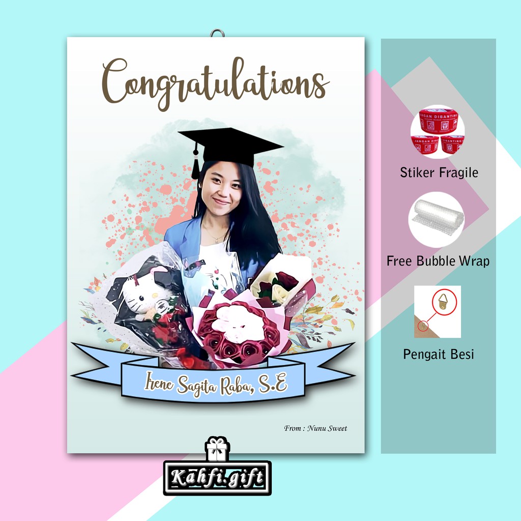 Desain Foto + Cetak Papan MDF (20x30cm) Kado Wisuda, Ulang Tahun, Hiasan Pajangan Dinding Karikatur