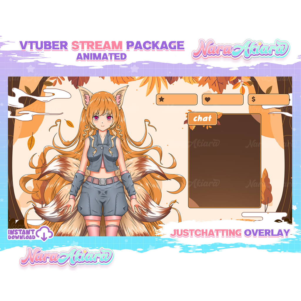 Desain Overlay Profesional untuk Streamer Serius, Penyiaran Profesional Overlay, Desain Streaming Overlay, Streaming Upgrade Overlay - Paket Overlay Anime Orange Fox Tail