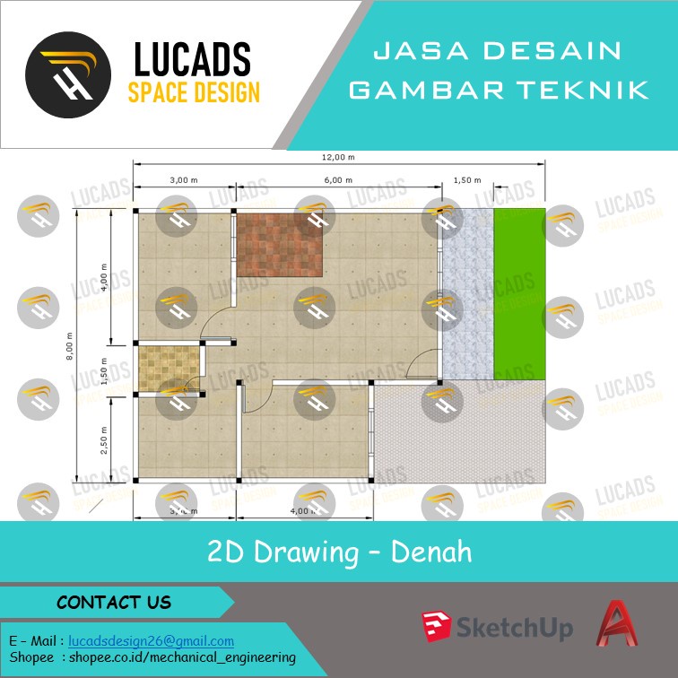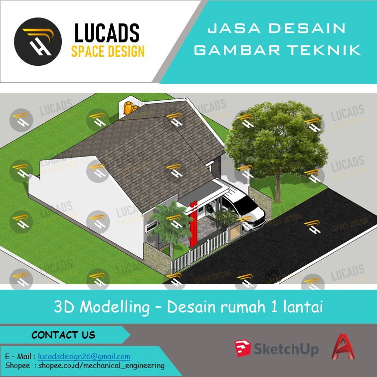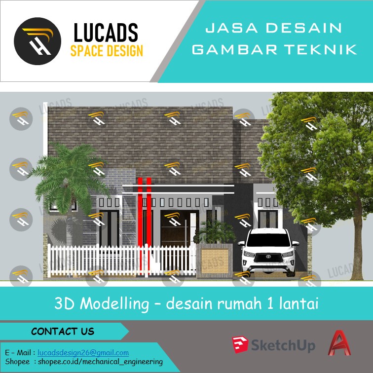 Desain Rumah dan denah rumah menggunakan aplikasi Autodesk AutoCad dan Sketchup