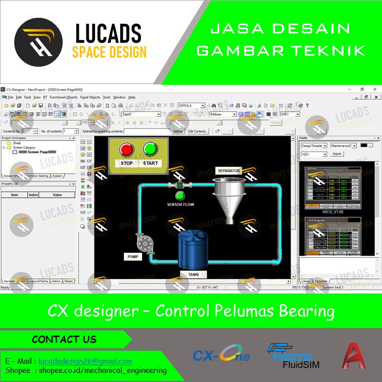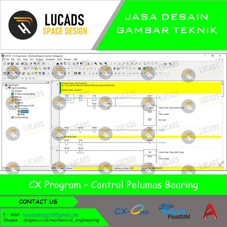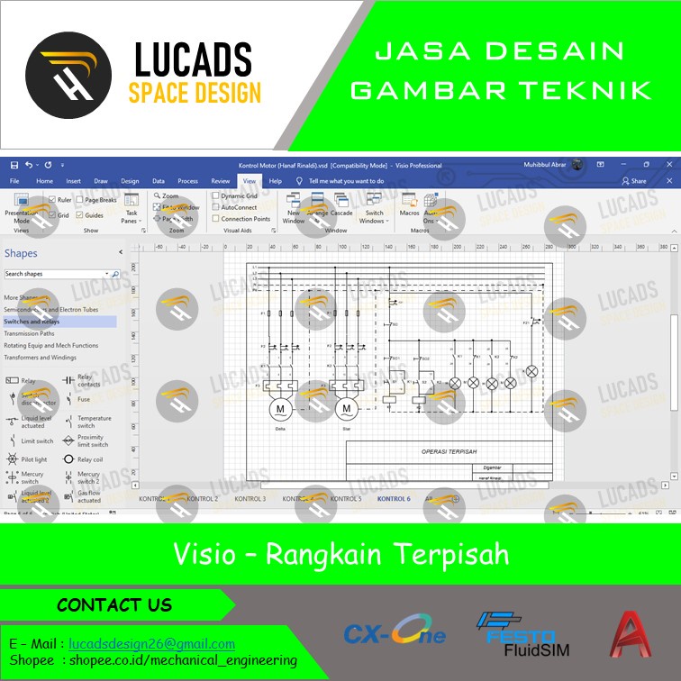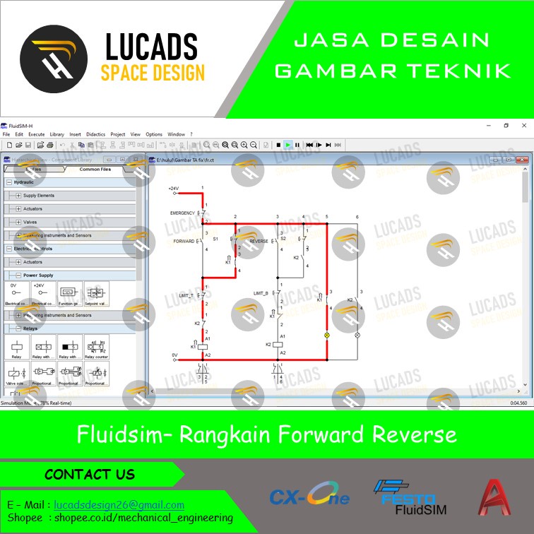 Desain Wiring diagram Listrik, pneumati, hidrolik, vidio simulasi menggunakan cx-one, fluidsim, autocad, dan visio