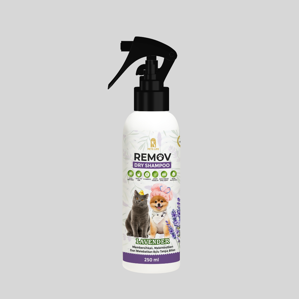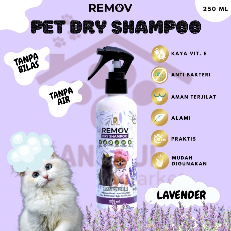 Pet Dry Shampoo Remov 250ml Viral Shampo Tanpa Bilas Kucing Anjing Kelinci Wangi Lavender