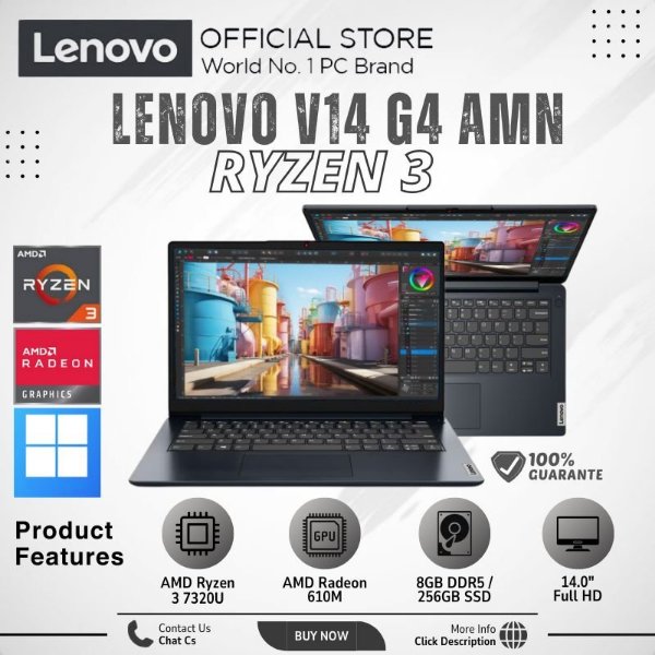 Laptop Gaming Baru Lenovo Ideapad Slim AMD Ryzen 3 7320U 8GB Ssd 256GB 14.0" FHD Black - V14 G4 AMN