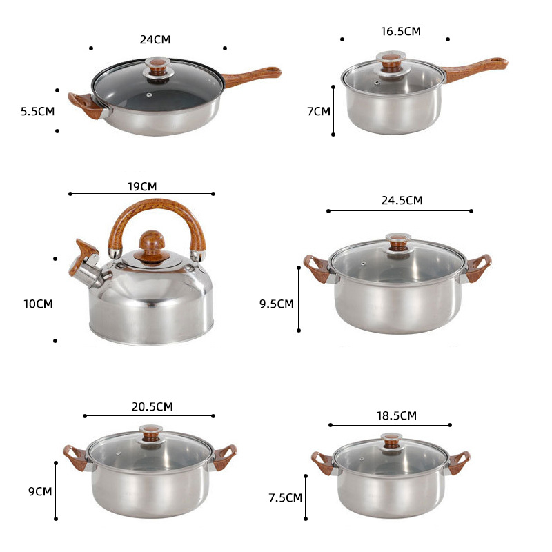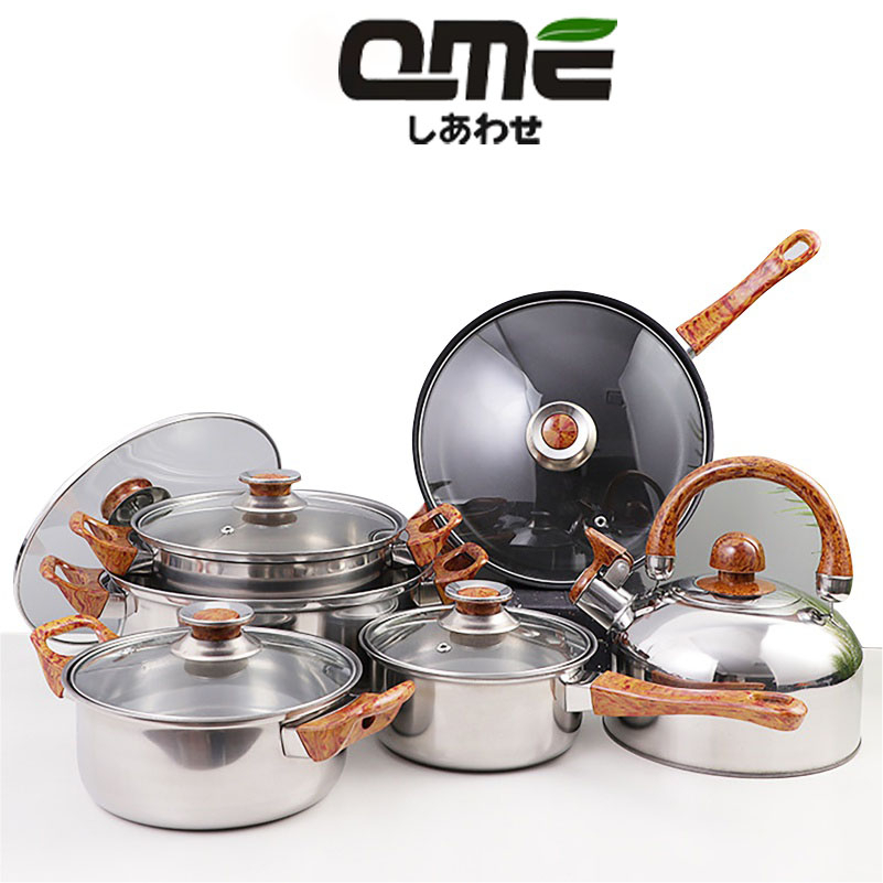 QME Panci Set Stainless Steel Dengan 6 Pcs Dengan Teko Stainless Panci Serbaguna Isi