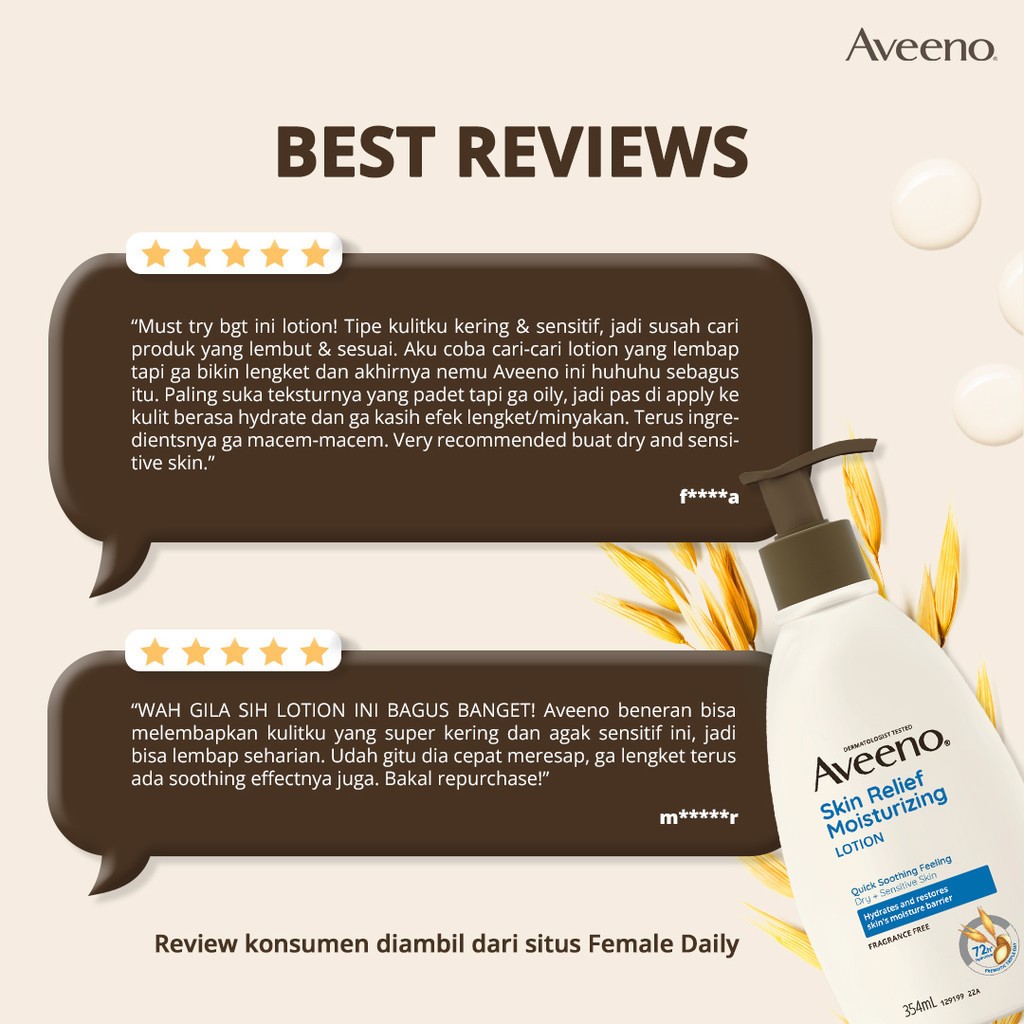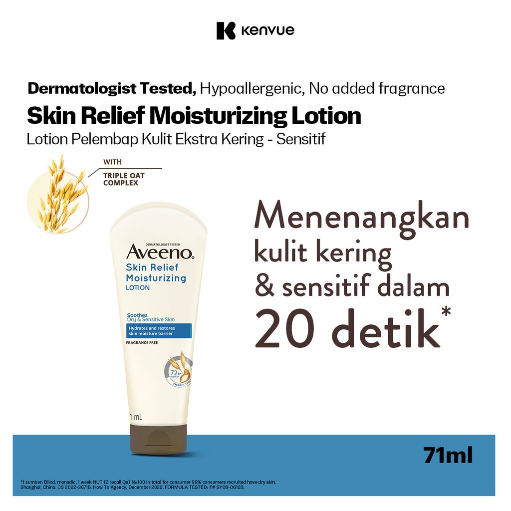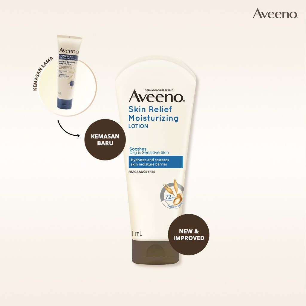AVEENO Skin Relief Moisturizing Lotion 71ml - Losion Melembapkan & Menenangkan Kulit Sensitif & Ekstra Kering dalam 20 Detik, dengan Triple Oat Complex & Shea Butter