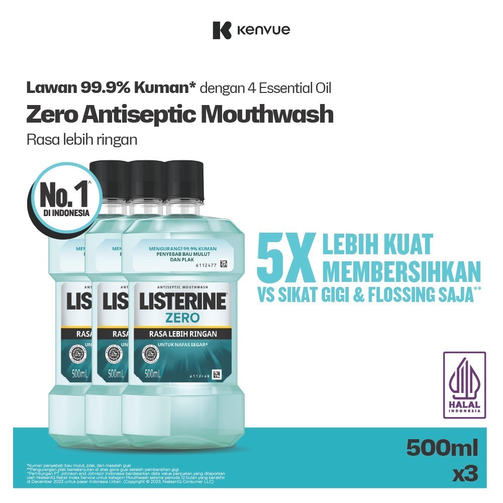LISTERINE Zero Antiseptic Mouth Wash - Obat Kumur Antiseptik 500 ml - Isi 3