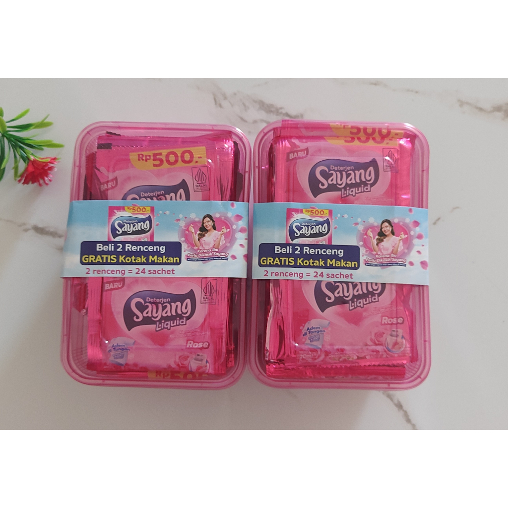 Detegen Sayang Tepak / Sayang Cair (24 pcs) / Detergen Sayang Free Kotak Makan / Sayang Detergen Cair Free Box