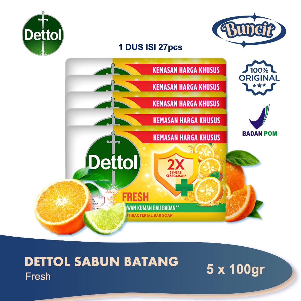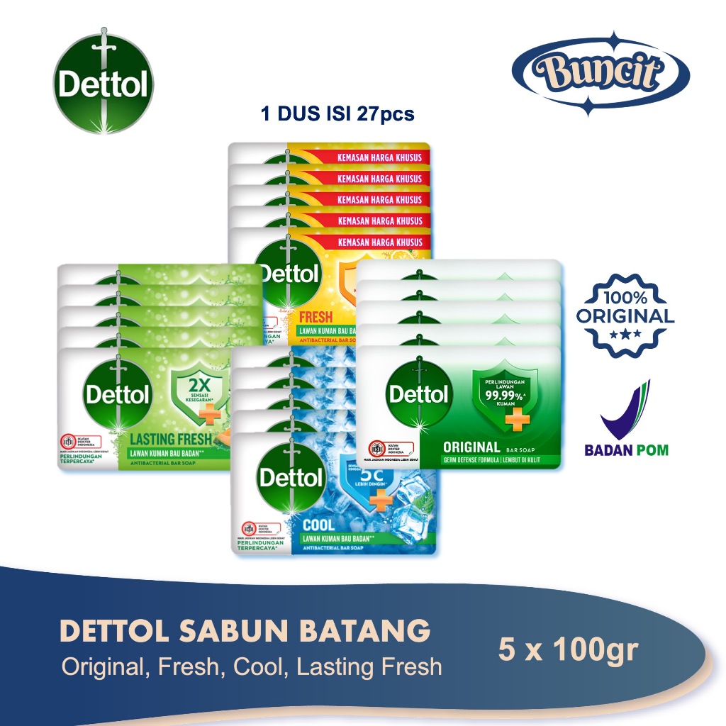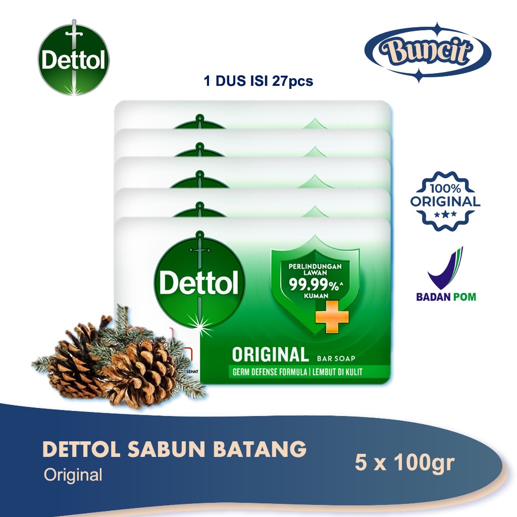 Dettol Sabun Batang 100gr (5 Pcs) \ Dettol Soap Bar \ Sabun Mandi Anti Bakteri & Antiseptik