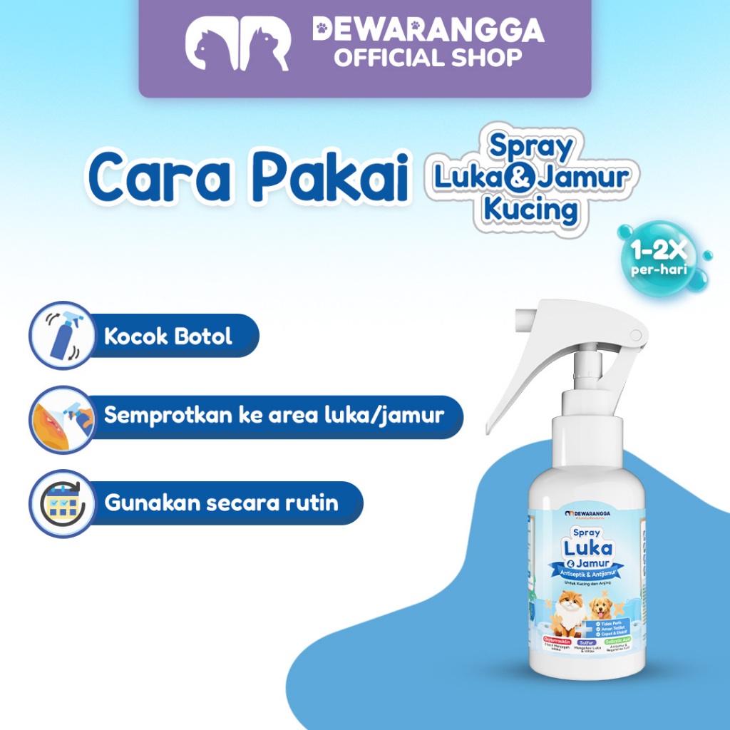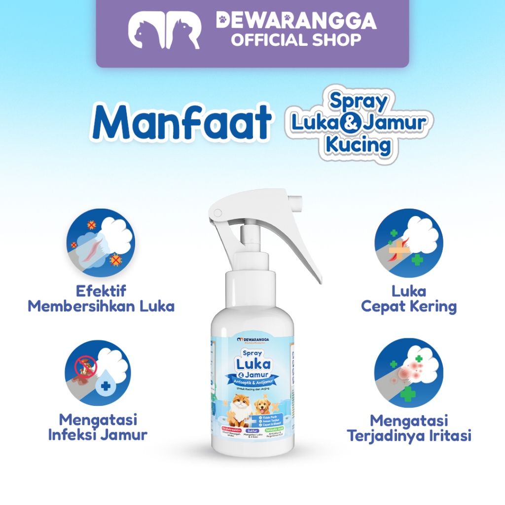 Dewarangga Spray Luka & Jamur Kucing – Perawatan Luka Kulit Kucing, Atasi Jamur & Infeksi Kitten Friendly