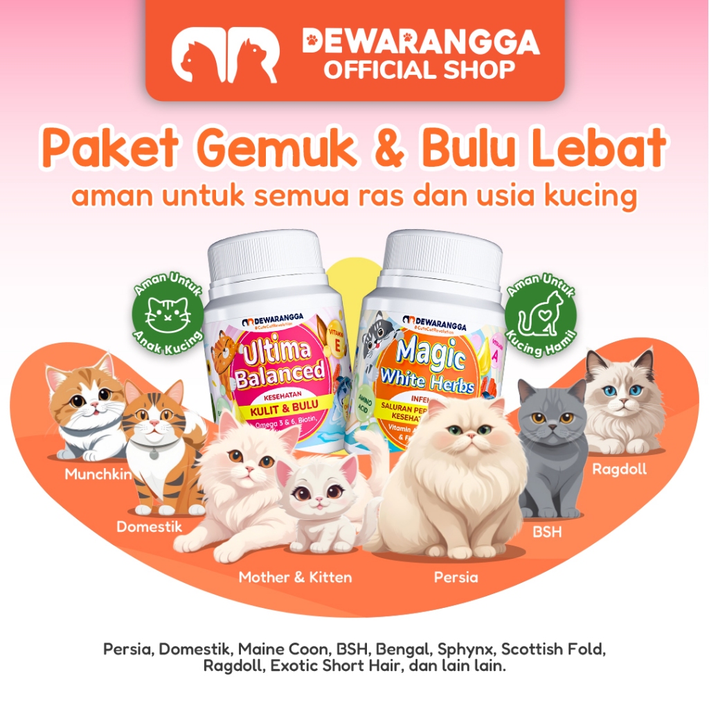 Dewarangga Paket Vitamin Kucing GEMUK & BULU LEBAT untuk Meningkatkan Nafsu Makan, Melebatkan Bulu dan Penggemuk Kucing