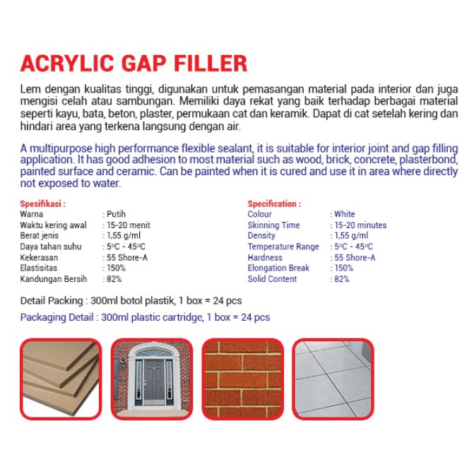 Dextone Sealant Acrylic Lem Silicone Akrilik Tambal Celah Retakan Dinding Kusen Beton Nat Keramik