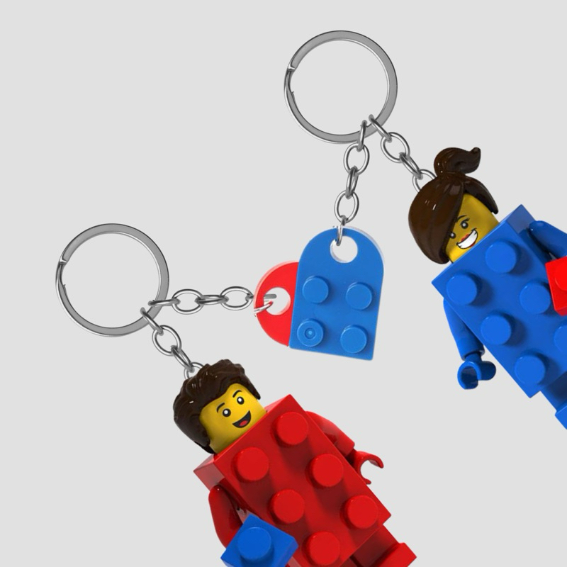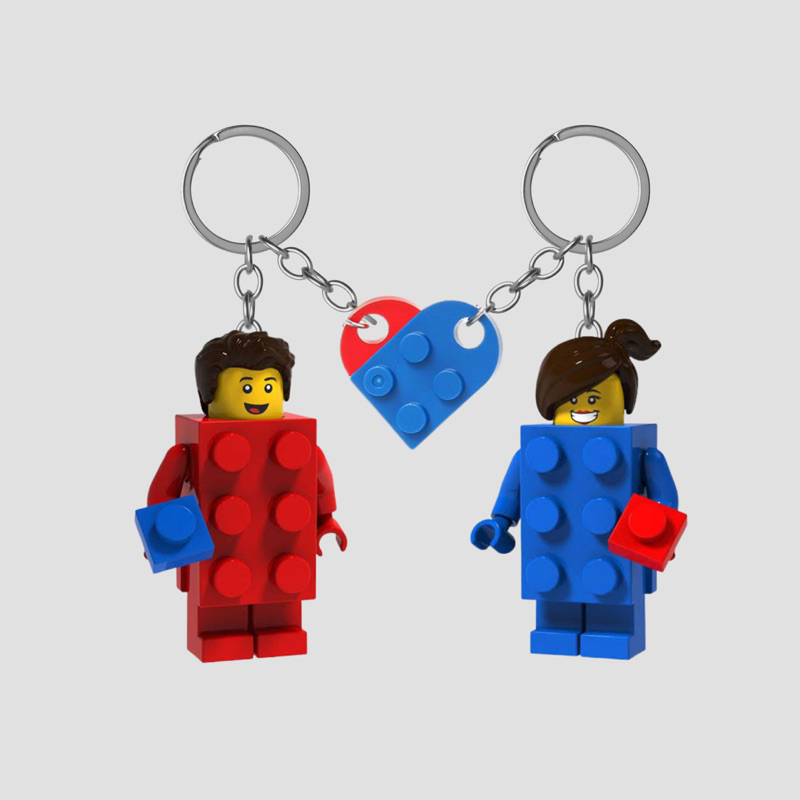 Dhis Project Gantungan Kunci Figure Red Brick Guy & Blue Brick Girl Couple Set