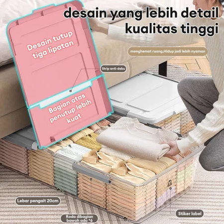 Di bawah Tempat Tidur Kotak Penyimpanan Kapasitas Transparan Ekstra Besar Box Tahan Air Dan Kelembaban Storage Box Kotak Penyimpanan Pakaian Dan Sepatu