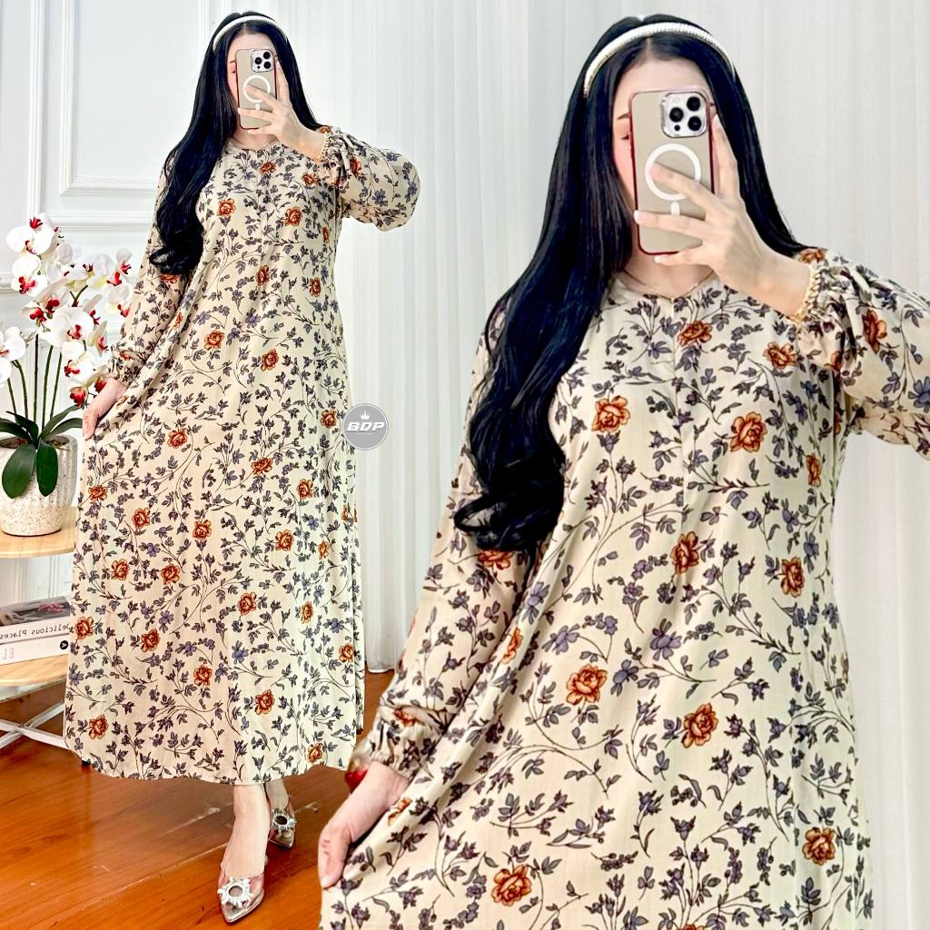 Dianputri - Daster Dress Maura Batik Cap Rayon Grade A Busui - Daster Wanita Lengan Panjang - Daster Kekinian - Baju Tidur Daster Adem