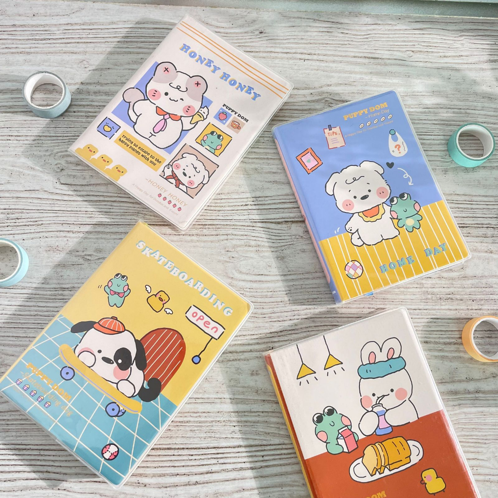 Diary Harian Jurnal Motif Puppy & Bunny Ukuran A6 Hard Cover 100 Lembar - Kertas Full Color Warna - diary kunci tulis notebook diari harian lucu unik warna warni random kartun