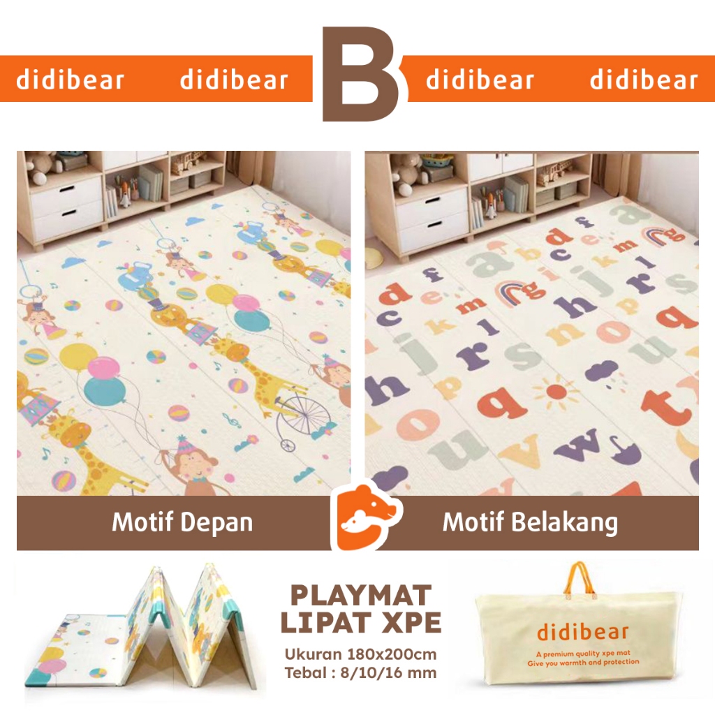 Didibear Karpet Lipat 180x115cm 9mm Playmat Bayi Karpet Bayi Matras Bayi Foam Lipat Nyaman Untuk Anak Warna Menarik Ketebalan 9mm