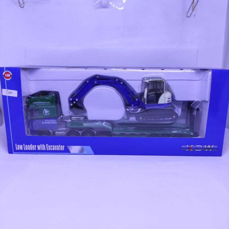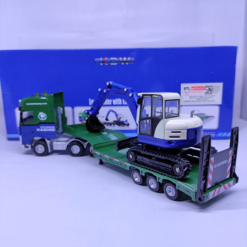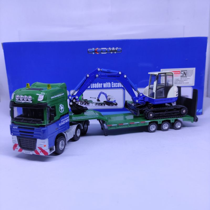 Diecast Miniatur Alat berat tambang Truck Daf low loader with Excavator Diecast Truck Low loader