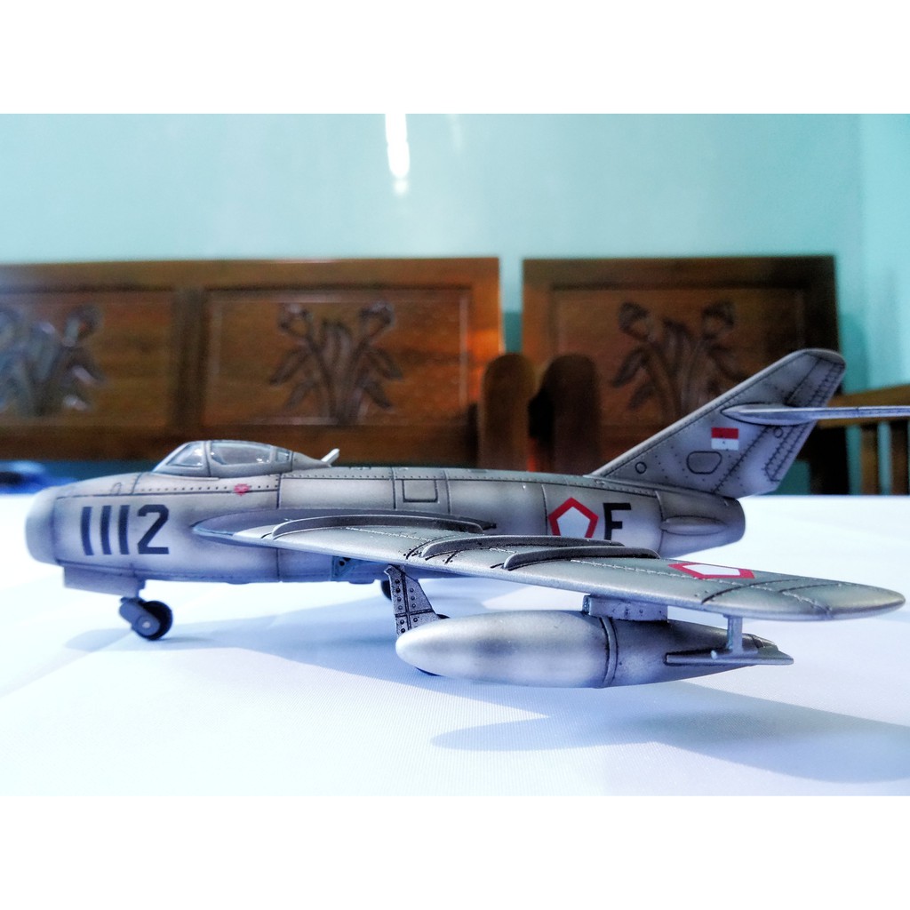 Diecast Pesawat Jet Tempur MiG-17 Fresco TNI AU AURI Skala 72 Thunder Aerobatics