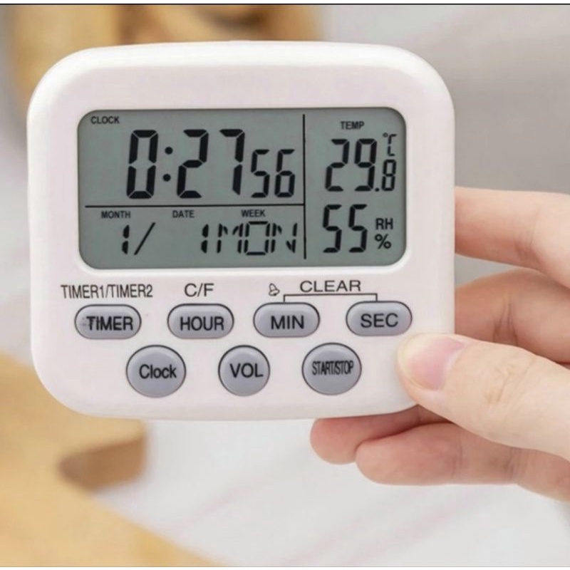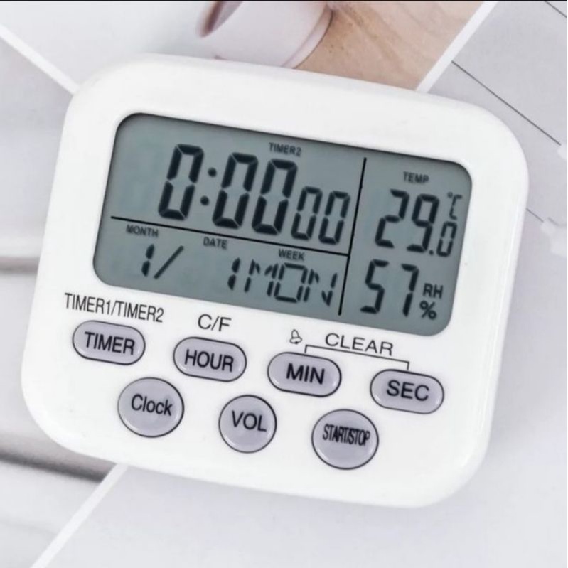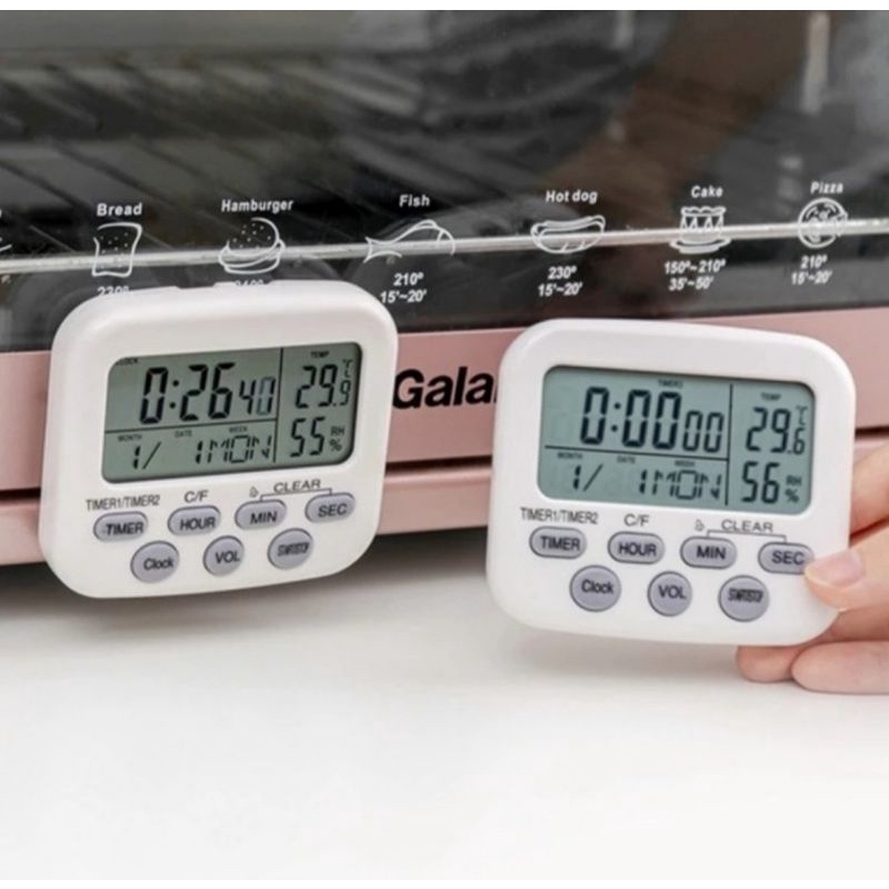 Digital , 2 Timer , 2 Alarm , Suhu Jam Tanggal Hari Alarm Dapur Timer Masak