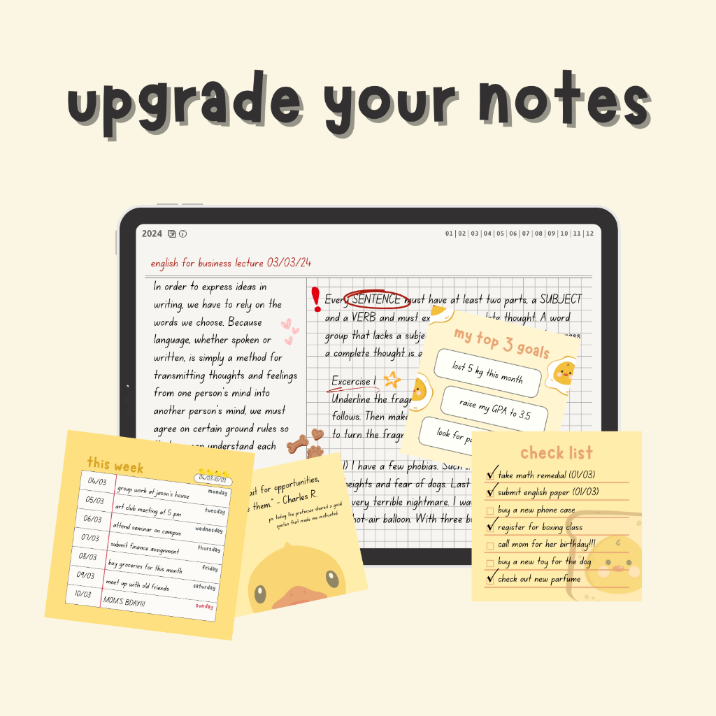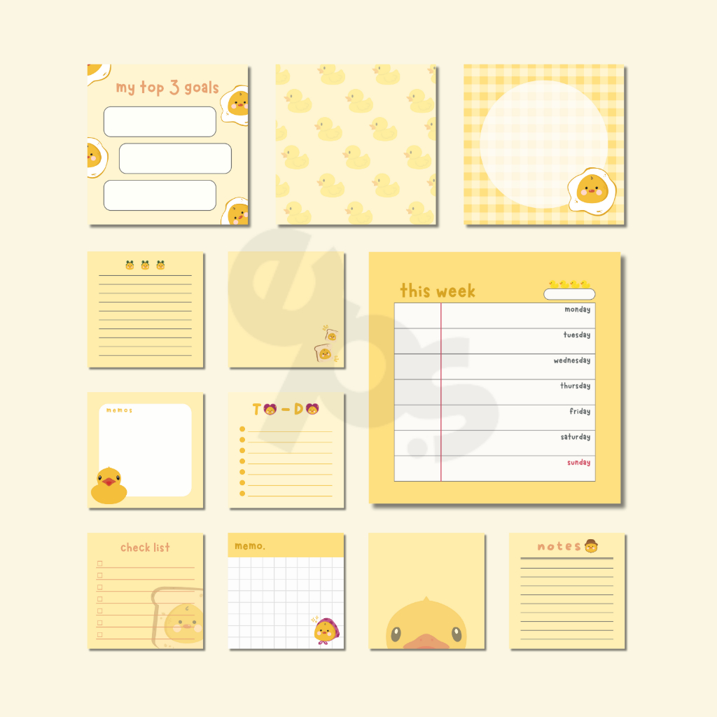 Digital Duck Memo Stickers - Bujo Bullet Journal Notebook Planner (GoodNotes Notability Xodo)