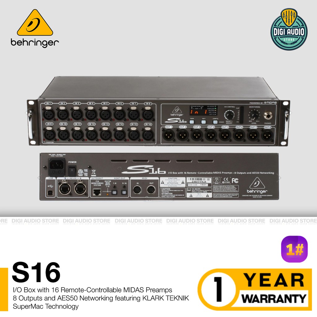 Digital Snake Stage Box Behringer S16 - 16 Channel IO Box for Audio Mixer Behringer X32 & Midas M32