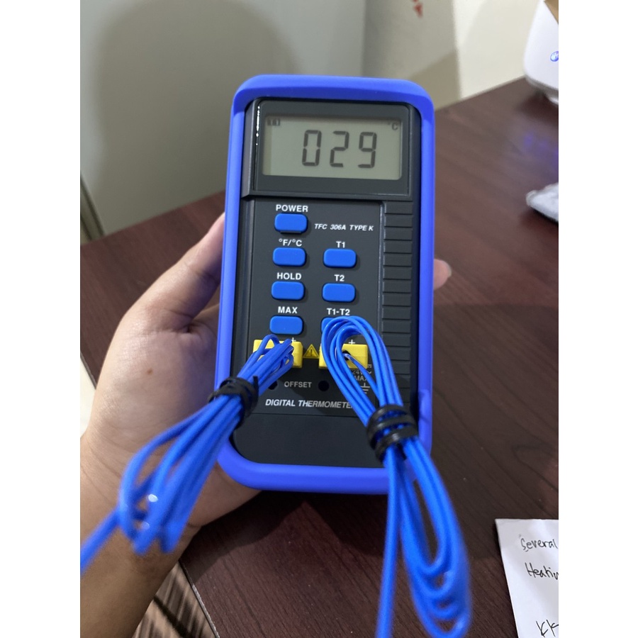 Digital Thermometer Dual Channel Type K Model TFC 306A Microtemp