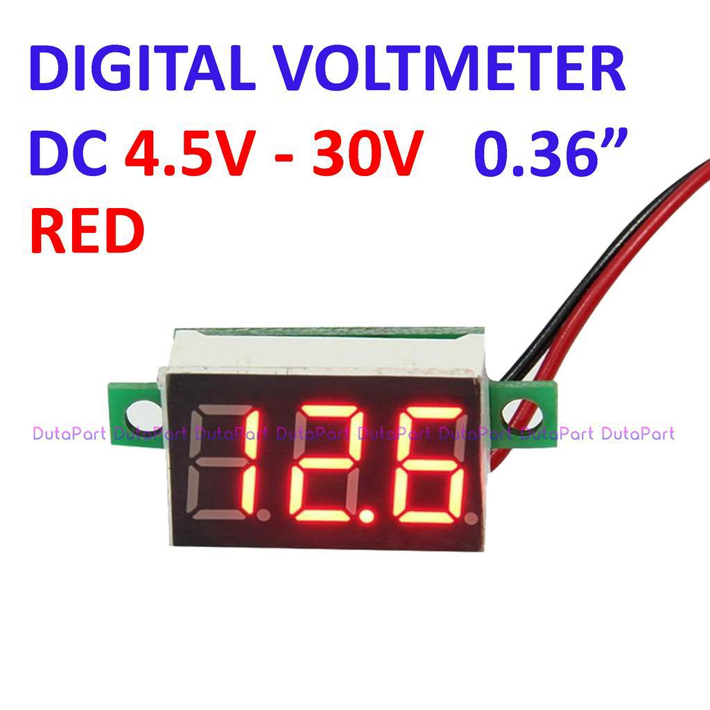 Digital Voltmeter DC 4.5V-30V 0.36" Merah 2Wire Tanpa Frame Volt Meter