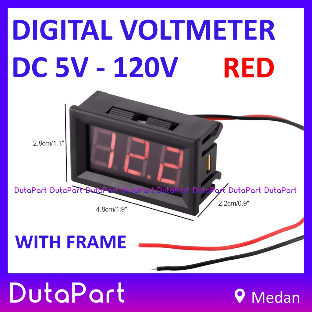 Digital Voltmeter DC 5V-120V 0.56" Red Merah 2 Wire + Frame Volt Meter
