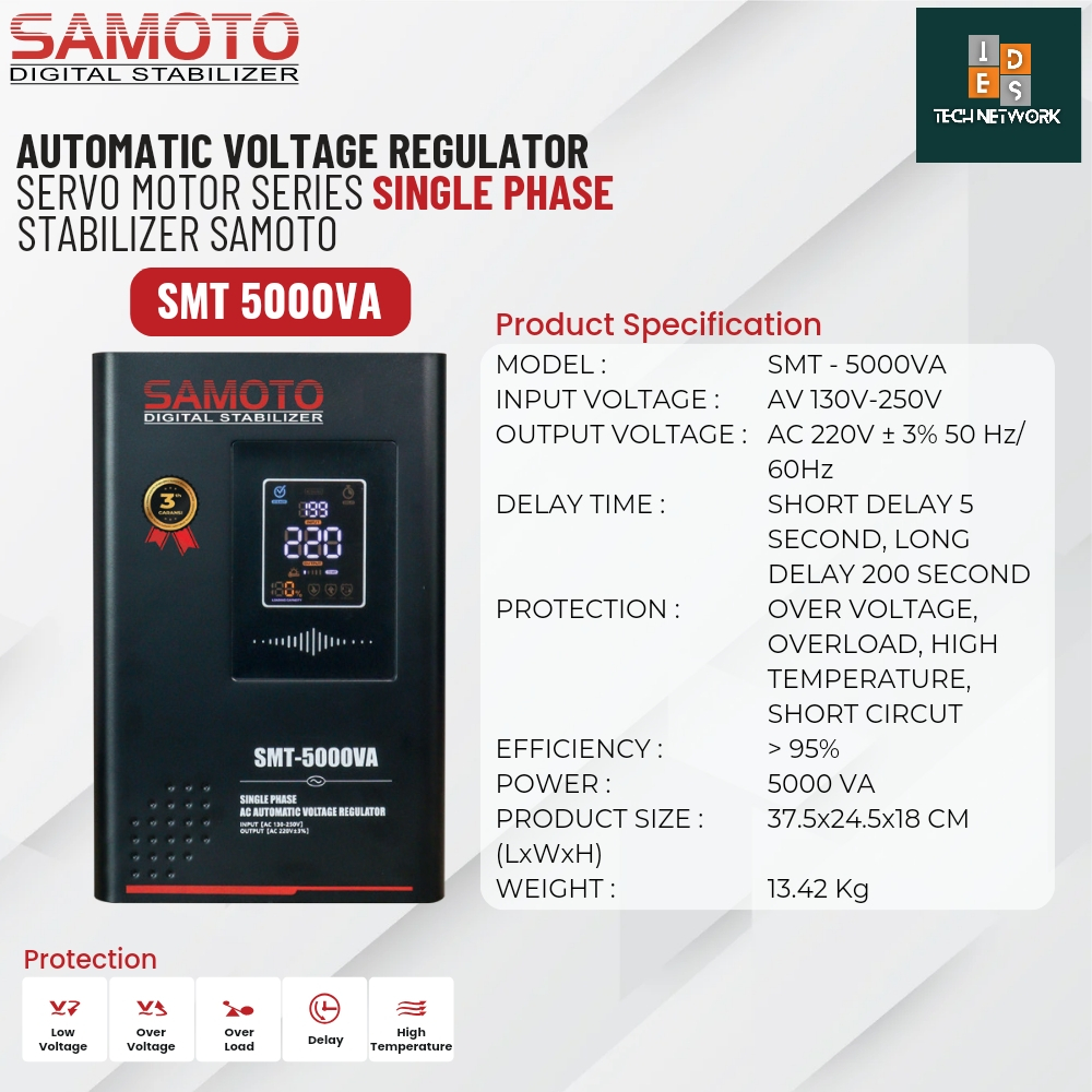 Stabilizer Samoto SMT 5000VA Single Phase Servo Motor Stabilizer Listrik