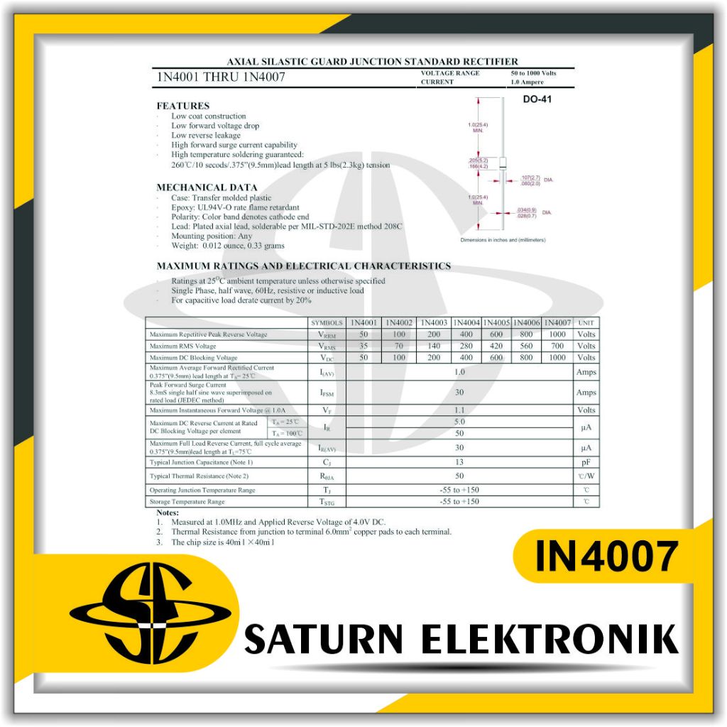 Dioda IN4007 1A Original Diode IN 4007 1 Ampere Asli Merk MIC