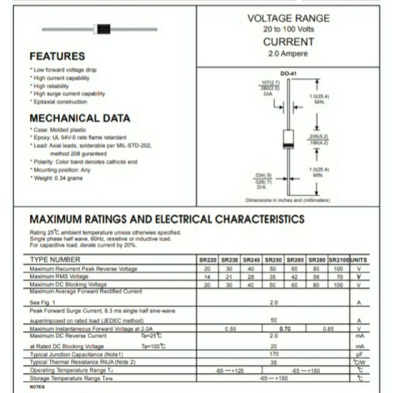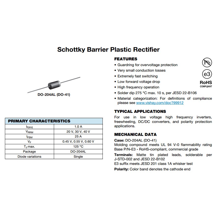 Dioda Schottky 1A - 3A 40 - 60V Barrier Rectifier Diode