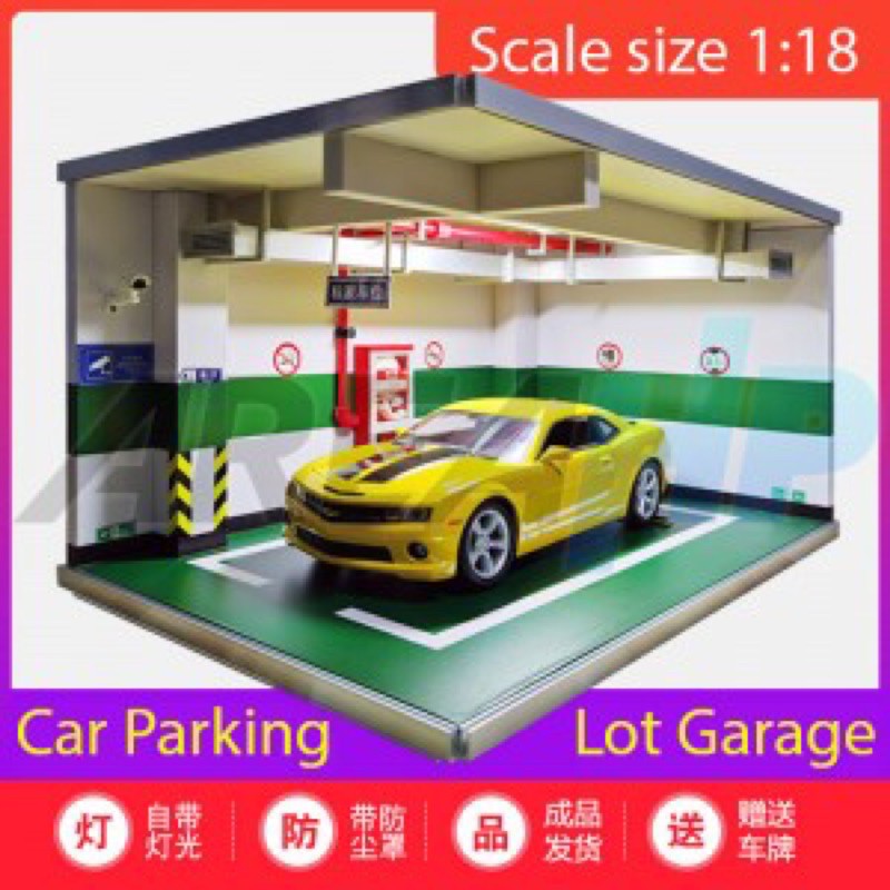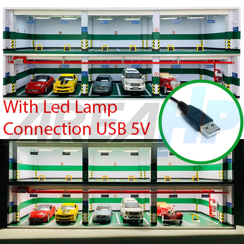 Diorama Diecast 4 Car Parking Lot Garage LED Lamp Green Scale 1:18/18