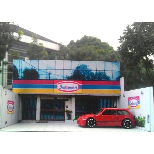 Diorama Papercraft Mini Market Indomaret Skala 1/64 Buat Photography