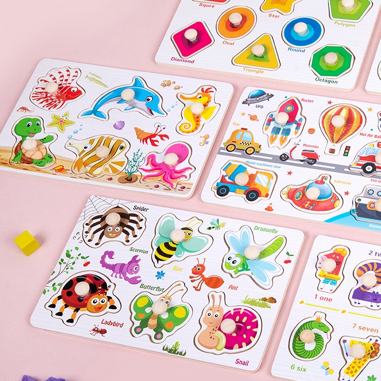 Diskon Shop - M5927 Mainan Anak Puzzle Knob Kayu Jigsaw Karakter Lucu / Puzzle Pengasah Otak Dan Motorik Anak / Mainan Edukasi Bergambar