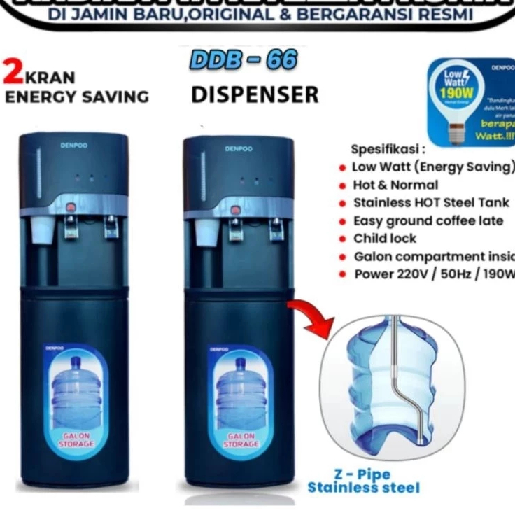 Dispenser Galon Bawah Panas Dingin & Normal New Denpoo DDB 99 (Papaer Glass Holder )190 Watt
