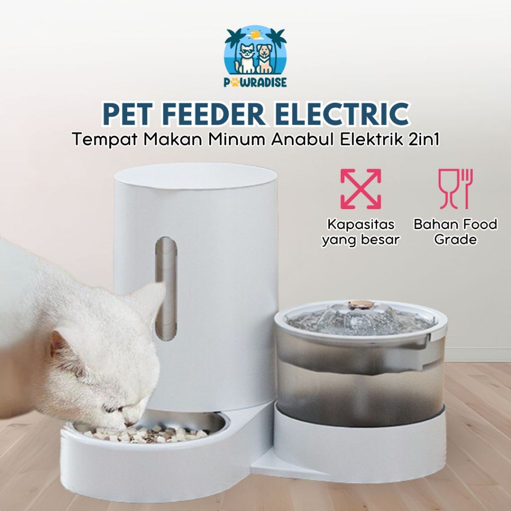 Dispenser Otomatis Tempat Makan Minum Hewan - Automatic Pet Feeder 2in1 Tempat Makan Minum Kucing Anjing - Tempat Makan Hewan Otomatis 1,5L - Water Dispenser Kucing Otomatis 1,8L