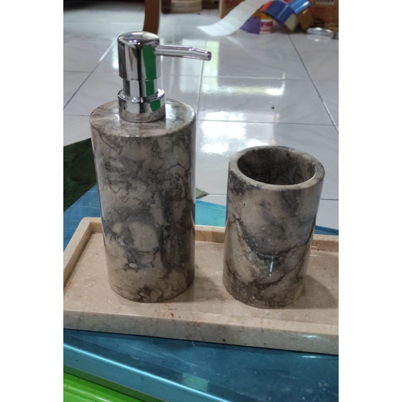 Dispenser sabun cair Doreng & Gelas Doreng marble marmer Free Coaster