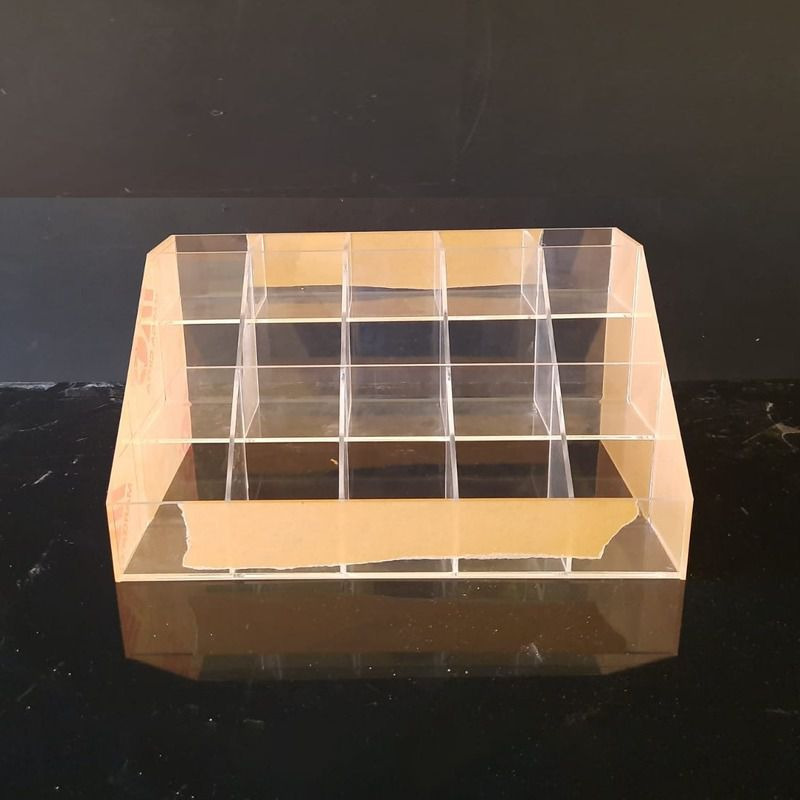 Display Rak custom | Akrilik custom | rak akrilik 5 ke samping 3 tingkat | Uk 30 x 22 x 18cm