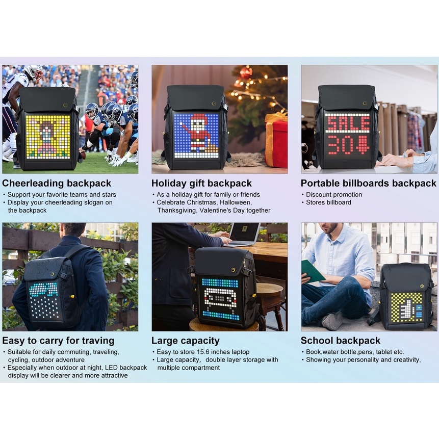 Divoom M Backpack Pixel Art DIY Smart Bag Tas RGB LED Screen Pixoo Ori - Divoom M