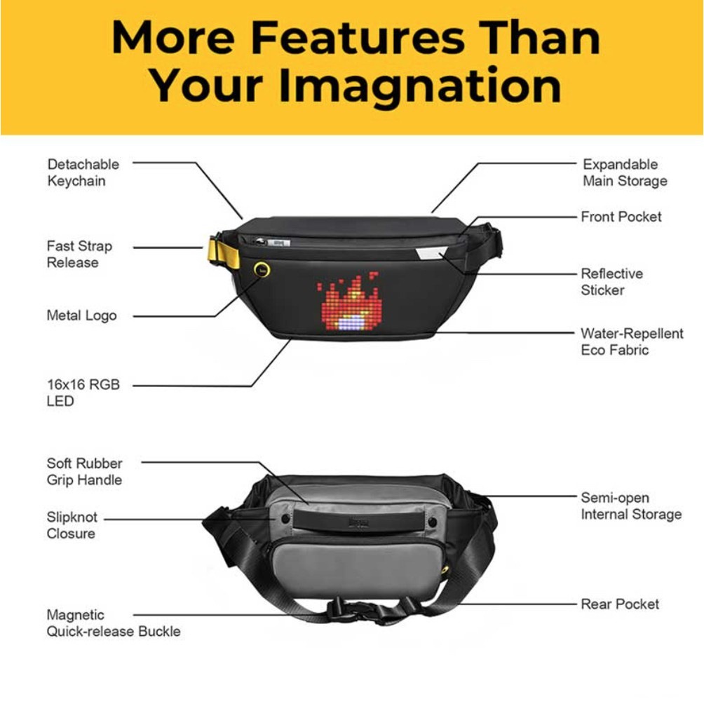 Divoom Pixoo Bag Divoom Pixoo Sling Bag Divoom Pixoo M Backpack Tas Selempang/Ransel Divoom Pixel Art yang Dapat Disesuaikan LED Ruang Besar tas divoom tas selempang tas ransel backpack