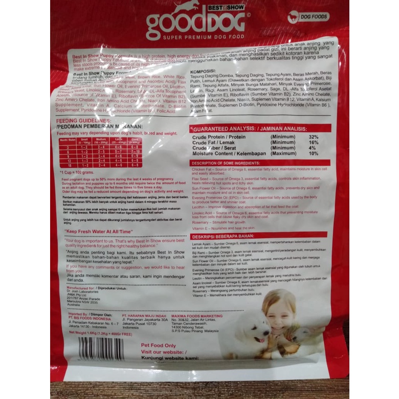 Dog food - BEST IN SHOW GOOD DOG PUPPY FORMULA LAMB 1,6kg