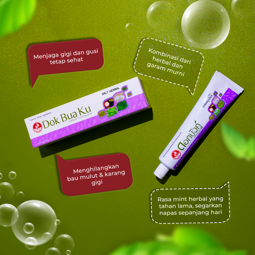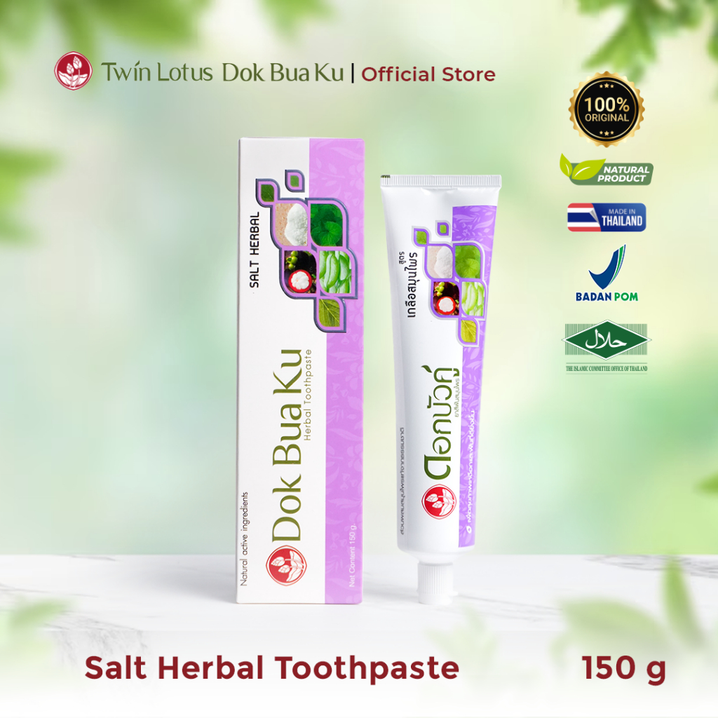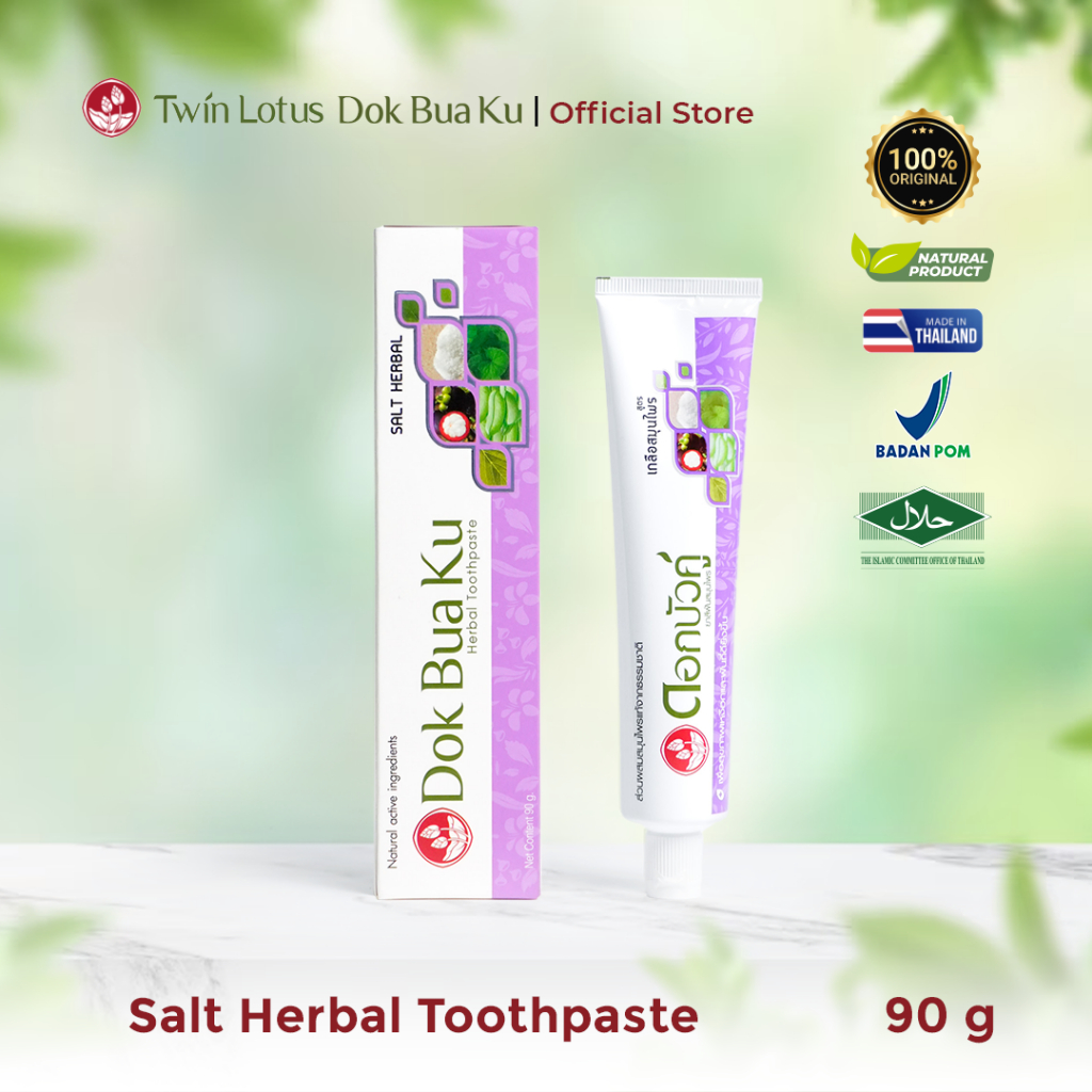 Twin Lotus Dok Bua Ku Salt Herbal Toothpaste 90g 150g | Pasta Gigi Herbal Garam Sariawan, Gusi Bengkak, Pemutih Gigi & Penghilang Bau Mulut