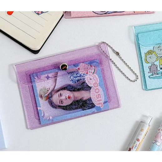 Dompet Kartu PVC Transparan Glitter Lucu Premium KPop dan Rantai - Aesthetic Cute Photocard Uang
