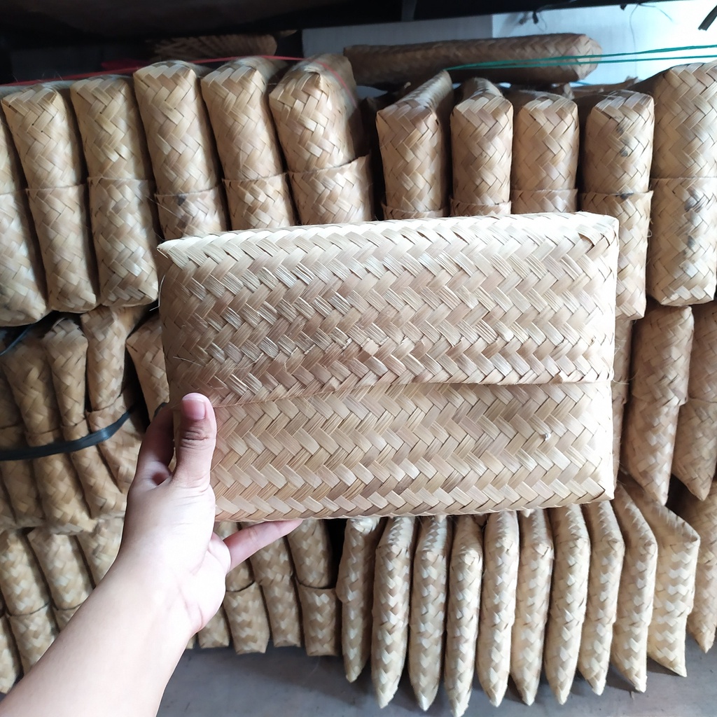Dompet Kotak L 25 x 17 cm/dompet souvenir/ dompet anyaman bambu undangan rustic/dompet kain/dompet packaging