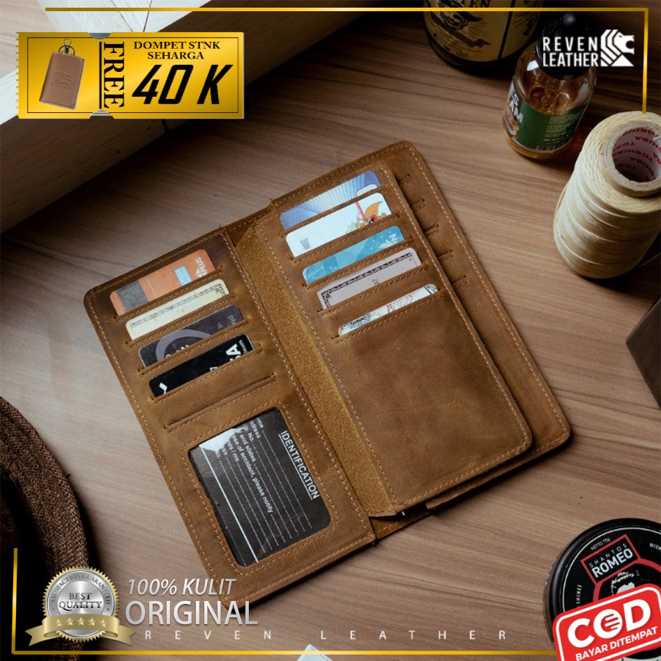 Dompet Kulit Panjang Pria Original Asli Cowok Import Branded Reven Gavin Wallet