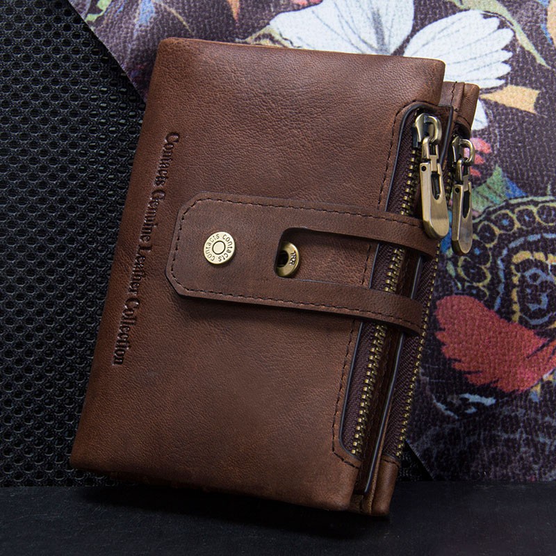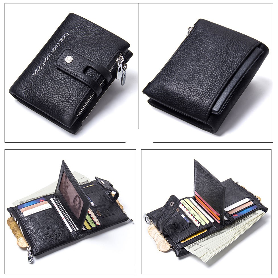 Dompet Kulit Pria Kulit PU Lipat Marx Genuine Leather Zipper Button Bifold Wallet Resleting Kancing