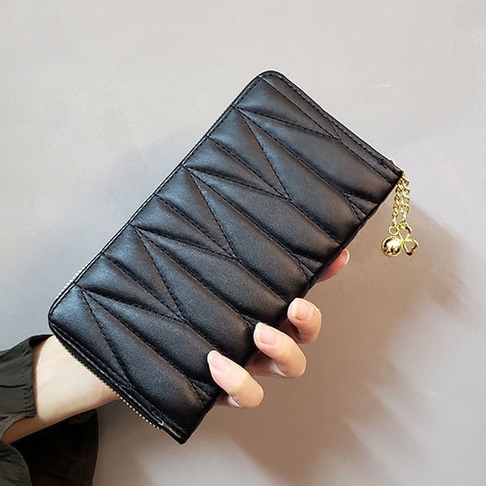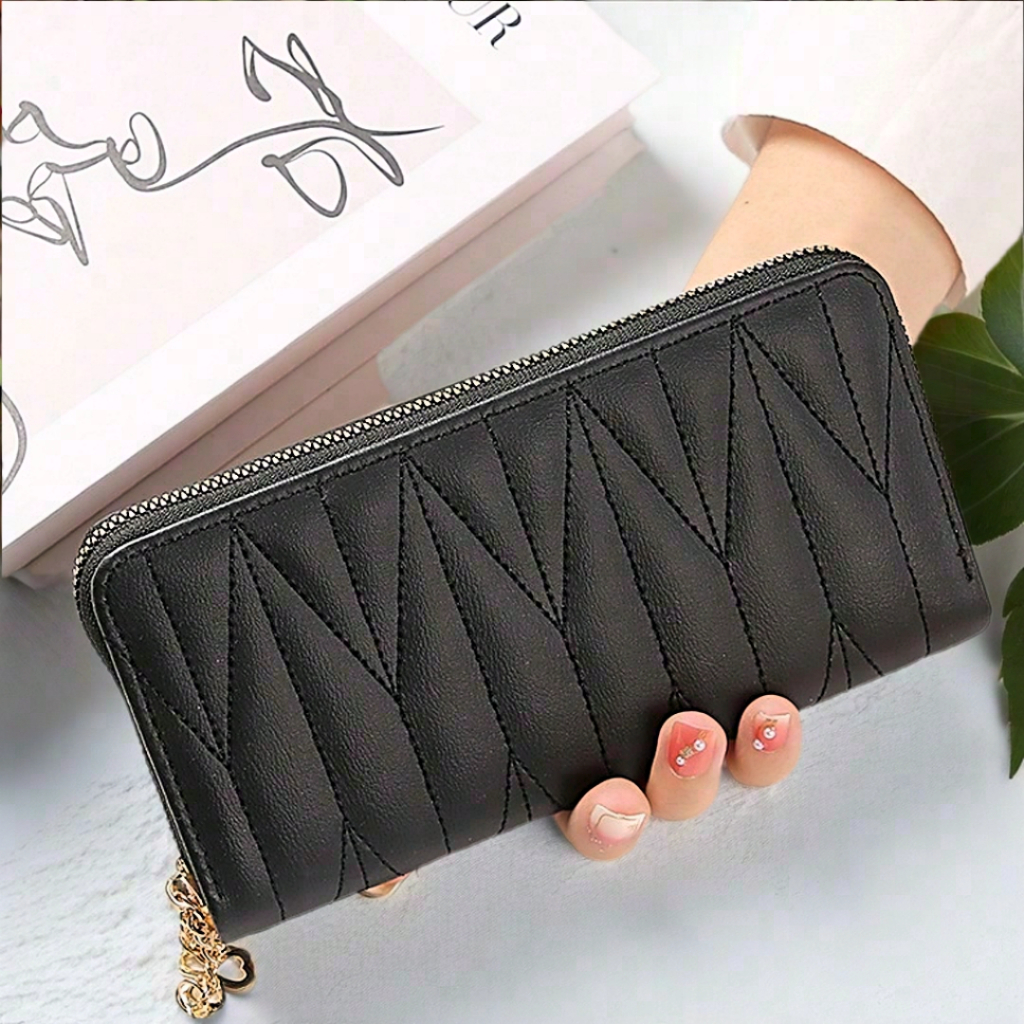 Dompet Wanita Panjang Kulit Pu Hitam Dompet Clutch HP Zipper Satu7an D83
