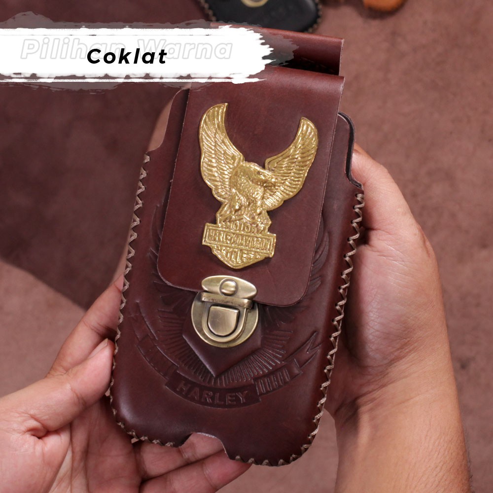 Dompet Pinggang HP Kulit Sapi Tebal Sarung HP 2 slot Logo HD Full Stitch Emblem Garuda TYPE PD01/04