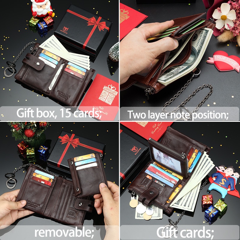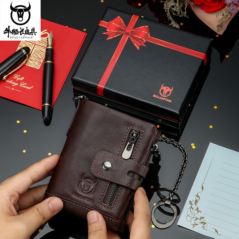 Dompet Pria Bull Kapten Kulit Ponsel Beberapa Slot Kartu Anti-Pencurian Rantai Suami Haah pria Kotak Haah Impor